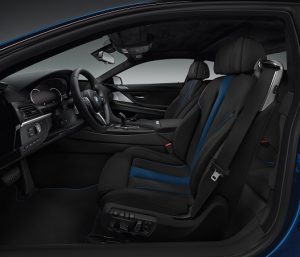 Vozidlá edícia M Sport Limited Edition sa môže pochváliť aj upraveným dizajnom interiéru. Vodič a predný spolujazdec si užívajú charakteristickú radosť z jazdy v komfortných sedadlách BMW Individual čalúnených jemnou kožou Merino v čierno-modrej farebnej kombinácii Black/Fjord Blue. Tieto poťahy sú v ponuke iba pre modely z limitovanej edície a dopĺňajú ich koberce s kontrastným prešívaním v modrej farbe Fjord Blue. Fascinujúce prostredie dopĺňajú karbónové obklady, volič automatickej prevodovky s karbónovými aplikáciami a prahy dverí s modrým pásikom a s nápisom „M Sport Limited Edition”.