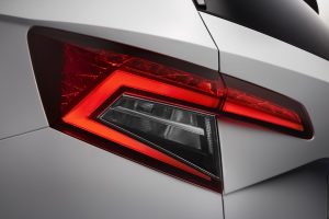 Atraktívne kryštalické tvary sú viditeľné aj na delených zadných skupinových svetlách, ktoré využívajú svetelné diódy pre koncové, brzdová a hmlové svetlá. Aj Škoda Karoq so svojím nočným vzhľadom hlási k rodine vozidiel s okrídleným šípom v znaku – koncové svetlá do tmy s charakteristickým tvarom písmena C.