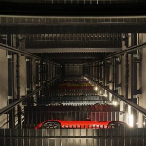 Zákazník si budove s pätnástimi poschodiami vyberie v prízemí na dotykovej obrazovke typ vozu a vďaka dômyselnému systému má do dvoch minút pred sebou svoje vybrané Bentley, Ferrari alebo Lamborghini.