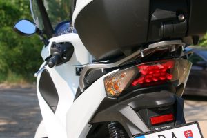 Oceňujem aj bezkľúčové štartovanie. V noci sa mi zas páčili LED svetlá vpredu aj vzadu. S motorom Hondy SH125i som bol spokojný. Nie je príliš hlučný, má dostatok sily, aby ste s ním rýchlo zmizli z hustých križovatiek a je aj úsporný. Moment spínania spojky je pozvoľný a dá sa jemne ovládať. To je super najmä pri manévrovaní v teréne, ktoré som absolvoval cestou k jazeru.