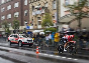 Nové kompaktné SUV značky ŠKODA štartovalo v úlohe servisného vozidla na najslávnejších cyklistických pretekoch sveta.Desaťtisíce divákov sledovali štart tohtoročnej Tour de France. Škoda Karoq odprevadila v úlohe servisného vozidla cyklistov troch stajní – Team Dimension Data z Juhoafrickej republiky, Team Lotto NL – Jumbo z Holandska a Lotto Soudal z Belgicka – na 14kilometrovej časovke a predstavila sa pritom prvýkrát širokej verejnosti. Prvá etapa tohtoročnej Tour – časovka – viedla od düsseldorfského výstaviska po známej Kráľovskej aleji a pozdĺž Rýna zase späť k výstavisku. Bola to premiéra ako pre Düsseldorf – po 30 rokoch štartovala Tour de France prvýkrát opäť v Nemecku – tak aj pre automobil Škoda Karoq, ktorý sa predstavil prvýkrát verejnosti pred tým než bude v závere roka oficiálne uvedený na trh.