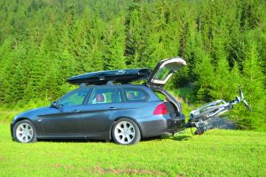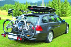 Základnou, cenovo najzaujímavejšou alternatívou prepravy bicyklov sú nosiče, ktoré sa montujú na piate dvere vozidla. Toto riešenie však má niekoľko zásadných obmedzení. Začnime konštrukciou vozidla. Okno vozidla veľmi často, z dôvodu dizajnu, prekrýva rám dverí. To znamená, že upínacie prvky nosiča budú držať na skle. Problém zvykne nastať aj v prípade horného uchytenia, na dverách je totiž veľmi často namontovaný spojler (väčšinou z plastu). Pozor, veľmi pravdepodobná je aj kolízia stieraču okna a rámu nosiča. A samozrejme, ak chcete dvere otvoriť a niečo uložiť do batožinového priestoru, musíte nosič z dverí odmontovať. Toto riešene však úplne nezatracujeme. Na krátke trasy jeden bicykel problém športovca vyrieši.