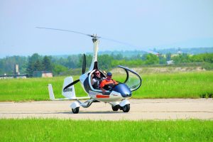 GyroMotion je vírnik, ktorý vďaka prídavnému elektromotoru dokáže a smie aj jazdiť po verejných komunikáciách. Čo je vírnik? Ak to vulgárne zjednoduším, predstavte si čosi, čo vyzerá ako ľahká helikoptéra, ale horizontálne vrtuľa nie je poháňaná motorom (len sa voľne otáča). Vzadu má tlačnú vrtuľu poháňajúcu vírnik vpred. Pro dosiahnutí určitej rýchlosti sa horizontálna vrtuľa (rotačné krídlo) krúti tak rýchlo, že začne vírnik „ťahať“ nahor. Geniálne, jednoduché, skvele to funguje. Počas jazdy po zemi má všetko, čo podľa zákona potrebuje. Ovláda sa ako lietadlo, teda pedálmi a pákami, ale nie je to nič zložité. Má žlté „číslo“ ako špeciálne vozidlo. Nemôže teda na diaľnicu, ale načo aj! Dosiahne veľmi svižne rýchlosť 40 km/h. Na ceste pôsobí ako UFO: 8,4 m dlhá, dvojlistová vrtuľa je fixovaná v ose vozidla a celok vyzerá, ako keby po ceste omylom išlo lietadlo. No nie je to omyl, GyroMotion sa len prepravuje napr. natankovať na normálnej čerpacej stanici, alebo niekam, odkiaľ môže vzlietnuť (stačí mu s rezervou 50 m!). Pán Březina nás povozil po letisku a s úplnou samozrejmosťou nás po jednom zobral aj do vzduchu!