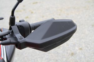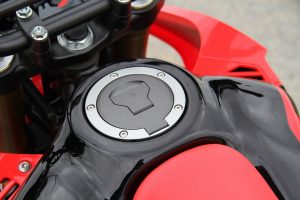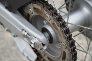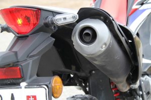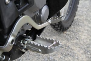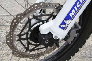Motor je naladený tak, aby poskytoval vysoký krútiaci moment v nízkych otáčkach a vysoký výkon na opačnom konci otáčkového pásma. Skutočnosť je taká, že sa s ním dá jazdiť od zhruba 4 000 ot.min-1. Pod týmito otáčkami síce ide, ale zdal sa mi akýsi nesvoj. V okolí 6 000 ot.min-1 akoby mu pribudli ešte jedny pľúca a odtiaľ živelne potiahne až ku 9 000. Potom sa výkon začne jemne vädnúť. Silnou stránkou je aj spotreba. S 10,1-litrovou nádržou urobíte zhruba 300 km, čo je vážna šupa. Veľmi príjemne ma prekvapil chod prevodovej páky. Jednotlivé stupne vrátane jednotky totiž zapadajú tak ladne, ako po výskoku dopadá na tanečný parket baletka. Navyše, delikátne cítiť, kedy cvakne neutrál. Zelená kontrolka je skutočne iba na kontrolu, v praxi ju vôbec nemusíte sledovať. Jednotka je extrémne krátka, dvojka veľmi krátka a trojka krátka, čo v kombinácii so silným stredným otáčkovým pásmom motora oceníte v teréne. Samotná prevodovka aj spojka sú dimenzované a konštruované tak, aby vydržali extrémne nároky off-roadového používania mašiny. Radička má napríklad sklápací mechanizmus, takže pri páde nemusíte zákonite ohnúť samotnú radiacu páku.