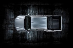 Na palube výstavného pickupu značky Toyota sa nachádza plastová vložka do korby a veľká skrinka na náradie, prahové lišty špecifické pre model, podlahové rohože a kožená ručná brzda.