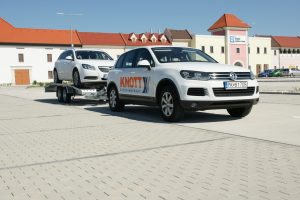 V obidvoch prípadoch sme ocenili veľmi dobré jazdné vlastnosti pri rýchlej jazde po ceste s priemerne kvalitným povrchom, ako aj počas absolvovania vyhýbacieho manévru. Na istote vozíka sa podpísala nielen jeho šírka, ale aj kvalita konštrukcie obidvoch náprav, ktoré sú štandardne osadené tlmičmi. Veľmi dobré výsledky vozík dosiahol aj pri brzdení. O bezpečné jazdné vlastnosti sa stará brzdová sústava firmy Knott pozostávajúca z nájazdovej brzdy a mechanických bubnových bŕzd. Brzdová sústava bez zmeny brzdného účinku zvládala aj extrémne opakované brzdenie s naloženým automobilom. Vozík je, samozrejme, vybavený cúvacou automatikou. Keďže ide o zariadenie určené pre podnikateľov, zaujímali nás aj náklady na servis. V porovnaní so štandardom v tomto segmente trhu sú nastavené veľmi férovo.