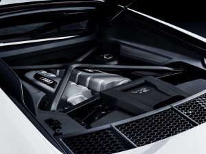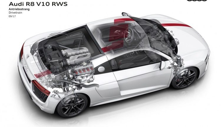 Atmosferický vidlicový desaťvalec 5.2 FSI, ktorý je uložený uprostred pred zadnou poháňanou nápravou modelu Audi R8 V10 RWS, dosahuje najvyšší výkon 397 kW (540 koní). Špeciálne nastavený podvozok umožňuje jazdu kontrolovaným šmykom pri nastavení jazdného režimu Dynamic a ESC do polohy Sport.