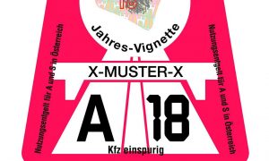 Ceny rakúskych diaľničných známok pre rok 2018 (v zátvorke 2017) v eurách