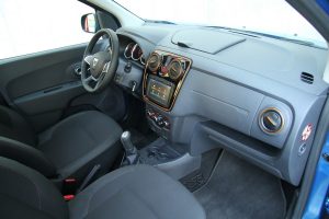 Vzhľadovo je Dacia Lodgy trocha ťažkopádna, ale významne to pomáha vnútornému priestoru. Vo verzii Stepway je možno zbytočné „vylepšenie“ vzhľadu akoby hliníkovými prvkami či čiernymi liatymi kolesami. Snažia sa vari maskovať účelnú skromnosť? Vynikajúco sa nastupuje, vystupuje, nakladá, vykladá. Niektoré prvky sú zastarané (dlhý kovový prút antény, otváranie kufra tlačidlom zámky), ale všetko to funguje a je jednoduché. Materiály vnútri neoslnia, no sú účelné, umývateľné, praktické. Nechýba a poteší tempomat, navigácia, detské zrkadielko. Trojbodové pásy sú na všetkých sedadlách a výklopné stolíky na zadnej strane predných operadiel.
