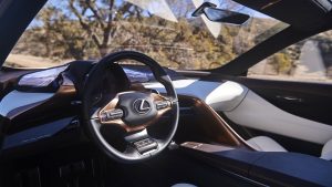 Interiér prezrádza, že okrem elegantného voliča samočinnej prevodovky sa môžeme tešiť aj na radenie prostredníctvom páčok pod volantom. Hoci podľa karosérie môžeme hovoriť o SUV, Lexus na svojich verných zákazníkov nezanevrel. S konceptom LF-1 Limitless sľubuje, že o rýchlosť a luxus rozhodne neprídete.