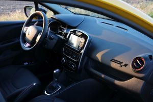 Clio R.S. Trophy je totiž zlostné autíčko. V bežnom režime sa síce motoricky správa ako baránok, ale jeho podvozok na menej kvalitnej ceste jemným poskakovaním naznačuje, že takto si Clio zábavu nepredstavuje. Chce ísť rýchlo! Prepnutím do režimu Sport alebo Race (kde máte k dispozícii iba manuálne radenie hliníkovými páčkami na stĺpiku riadenia) odhalí svoju pravú tvár. Z výfuku od legendárneho Akrapoviča sa začnú popri nahnevanom vrčaní a chrčaní ozývať pľuvance a strely, malý turbomotor reaguje na plyn ochotnejšie a prevodovka radí najrýchlejšie, ako vie. Po pridaní tempa sa podvozok upokojí a vy máte zrazu v rukách perfektnú neúnavnú vreckovú raketu, ktorá napriek prednému náhonu veľmi rada tancuje zadkom a brzdí ako o život. Charakter 220-koňovej jedna-šestky je zaujímavý. Pri pridaní plynu v strednom pásme vám nezlomí krk, ale o to charizmatickejšie útočí na červené pole, za ktorým leží ustrieľaný obmedzovač. Funkcia Launch Control a vynikajúca ručná brzda z vás na pár sekúnd spraví rely jazdca. Rýchlosť a odozva prevodovky sa od uvedenia aktuálnej generácie Clia R.S. výrazne zlepšili. Čerešničkou sú však jeho jazdné vlastnosti. Verzia Trophy má podvozok oproti verzii CUP ešte nižší podvozok (-20 vpredu a -10 mm vzadu), tuhšie tlmiče, až o 40 % tuhšie zadné pružiny, o 10 % rýchlejšie riadenie a agresívnejšie naladenú prevodovku. To všetko robí z Clia R.S. Trophy najzábavnejší malý ostrý hot.hatch na trhu.