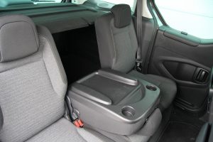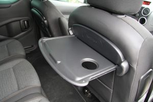 Začnem priestorom. Na pomerne malom pôdoryse (4 380 × 1 857 mm) ponúka viac ako ktorékoľvek kombi alebo SUV, ktoré sa dnes tak vehementne tlačí dopredu, s porovnateľnou dĺžkou. Kľúčom je priestor nad hlavou a kolmé bočné steny. Samozrejmosťou je variabilita príznačná pre rodinné MPV. Vzadu sú totiž tri samostatné sedadlá, ktoré síce nie sú posuvné, ale môžete si na nich prispôsobiť sklon operadiel, môžete sklopiť ich operadlá do horizontálnej roviny, môžete celé sedadlá preklopiť dopredu a nakoniec ich aj môžete pekne jeden po druhom vybrať z auta. Užitočným detailom je, že ak sú vzadu dvaja, tak si zo zadnej strany operadla prostredného sedadla môžu urobiť stolík. Alebo si môžu vyklopiť stolík z chrbtovej strany predných sedadiel. Testovaný exemplár mal navyše sedadlo spolujazdca, ktoré umožňovalo preklopiť jeho operadlo dopredu a prevážať tak v aute aj dlhšie predmety. Užitočným prvkom je elektrická detská poistka (nie na okná, ale na otváranie dverí) ovládaná priamo z miesta vodiča. Dodajme, že my sme mali päťmiestnu verziu, no existuje aj sedemmiestna. Kufor má v základe objem 675 dm3, a keď použijete sieťku a využijete priestor až po strop, tak až 1 350 m3. So sklopenými zadnými sedadlami je to potom 2 400 a po ich vybratí až 3 000 dm3. Silnou stránkou sú tiež odkladacie priestory, ktorých je neúrekom – pod nohami pasažierov v druhom rade, nad hlavou vodiča a spolujazdca, nad kaplnkou prístrojového štítu, vo dverách v niekoľkých úrovniach. Parádny je veľký vyberateľný box medzi prednými sedadlami. Jeho jedinou chybičkou je, že keď sklopíte spolujazdcovo operadlo dopredu, aby ste naložili nejakú dlhú vec, tak zavadzia lakťovému operadlu sklopeného sedadla. Preto vtedy musí box von. Z pohľadu rodinného využívania musím spomenúť ešte dve, resp. tri príjemné skutočnosti. Zadné dvere sú posuvné, čo uľahčuje manipuláciu s detskými sedačkami. Okno v piatych dverách je výklopné, takže ak chcete niečo uložiť na plató, tak nemusíte otvárať celý kufor. A tou treťou vecou je, že spomínané plató je pevné (neunesie len kabát) a má tvarované vaničky. Naopak, sklamaním je, že USB konektor pod rádiom nenabíja mobil. Ja som sa za volantom cítil príjemne, ale musím povedať, že ak preferujete posed s operadlom skloneným viac dozadu, tak vás môže sedadlo tlačiť v oblasti bedier. Dôvodom je, že otočný kĺb sedadla je príliš vysoko.