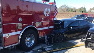 K netradičnej havárii došlo na rýchlostnej diaľnici 405 pri kalifornskom meste Culver City. O pol deviatej ráno narazilo spomínané vozidlo do odstaveného hasičského auta 42, ktoré zasahovalo pri inej dopravnej nehode na diaľnici. A zatiaľ, čo sa hasiči venovali odstraňovaniu následkov nehody, do ich vozu zozadu narazila čierna Tesla Model S, ktorá sa tom čase rútila rýchlosťou okolo 105 km/h. Dopravnú nehodu označili za ťažkú, pretože celá predná časť Modelu S bola v dôsledku nárazu úplne rozbitá. Šofér našťastie vyviazol bez zranení en s ľahkým šokom.