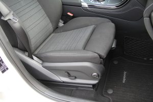 Vnútri vás privíta typické prostredie Mercedesu-Benz, skvelé vzhľadom, materiálmi i ergonómiou. Dominuje čierna so striebornými decentnými doplnkami. Tu nič nie je iba naoko. A nič nechýba. Nájdete dostatok priestoru na všetko a všade, ale nie zbytočný gigantizmus. Vynikajúce sú predné sedadlá s možnosťou nastavenia dĺžky sedáka pod stehnami. Zaujímavé je, že pozdĺžny posuv sa nastavuje manuálne, zvyšok elektricky.