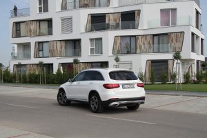 Nastaviť sa dá aj hospodárenie s energiou v akumulátore. Menu obsahuje režimy Hybrid, E-Mode, E-Save, Charge. Energiu si teda napr. môžete zobrať „so sebou“ až tam, kde chcete jazdiť ako elektromobil. Na plné nabitie reálne prejde v elektrickom režime do 30 km so zapnutou klimatizáciou, rádiom a pod. Vtedy je GLC e úplne tiché. Pohyb úplne potichu a bez emisií je vynikajúci zážitok. Pri práci spaľovacieho motora je však hlučnejšie len nebadane. O toku energie, dojazde a pod. je vodič perfektne informovaný. Objem batožinového priestoru trocha utrpel pre akumulátor. Zadné operadlá sa však sklápajú aj z kufra tlačidlami a vytvoria rovnú plochu, čo je veľmi praktické. Jazdiť v tomto mercedese je radosť. Reakcie vozidla na čokoľvek sú vynikajúce. V športových režimoch je šokujúco dravý a sebaistý. Podvozok je tichý, filtruje najmä v komfortnom móde aj veľké nerovnosti a neprenáša rázy do riadenia. Stály pohon všetkých kolies a 7-stupňová automatická prevodovka posúvajú GLC e aj do terénu. A to sa nerozpisujem o možnosti zvýšenia svetlej výšky, adaptívnych svetlách, atď. Kto hľadá plug-in hybrid, všestranne výkonné SUV a prémiovú značku, ktorá sa na nič nehrá a všetko, čo má, naozaj do vozidla dala, je pri tomto aute na najlepšej adrese!