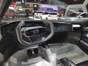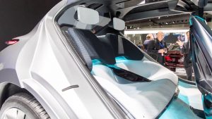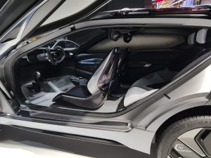 Samotnou kapitolou sú krídlové dvere, z budúceho tisícročia sú aj sedadlá s nezávisle pripevnenou opierkou hlavy o strop. Svoje nesporné miesto má v interiéri aj oddelený palubný počítač s ilúziou levitovania alebo futuristický volant v štýle Formule 1, či moderných jácht. Konceptu nechýbajú ani naozaj nekonvenčné nápady, ako napríklad implementovanie VR technológie do okien, vďaka ktorému by šofér lepšie vnímal okolie počas nočnej jazdy.