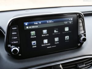 Hyundai Santa Fe ponúkne viacero alternatív konektivity. Príplatkový systém infotainmentu s dotykovým displejom 20,3 cm (8 palcov), vybavený integrovanou navigáciou podporuje Apple CarPlay, Android Auto ako aj služby Live Services. Nižší systém infotainmentu, s dotykovým displejom 17,8 cm (7 palcov), umožňuje integráciu smartfónu vodiča cez Apple CarPlay a Android Auto. Poslednou novinkou, ktorú automobilka odhalia, je nový head-up displej. Dôležité jazdné informácie a signály bezpečnostných systémov premieta priamo na predné okno. Vysoká svetelnosť 10,000 cd/m2 a uhlopriečka obrazu 20,3 cm umožňuje optimálnu viditeľnosť aj za intenzívneho denného svetla a zachytenie informácií bez odpútania pohľadu vodiča od premávky pred vozidlom.