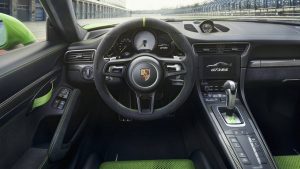 Odborníci na aerodynamiku vyvinuli pre 911 GT3 RS špeciálne nárazníky. Prítlak zvyšuje tiež masívne zadní krídlo. Automobil rovnako podstúpil „odtučňovaciu kúru.“ Ubralo sa napríklad na materiáloch, ktorých účelom je redukovať hluk, sedačky sú z uhlíkových vlákien a ľahšie sú tiež výplne dverí.
