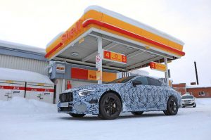Pred ženevskou premiérou sa v médiách objavili len prvé oficiálne zábery auta, ktoré zverejnil priamo Mercedes. Na nich síce voz zostáva zakrytý kamuflážou, napriek tomu pod vrstvou maskovania sú jasne zrejmé detaily vlaňajšej štúdie Mercedes-AMG GT Concept.