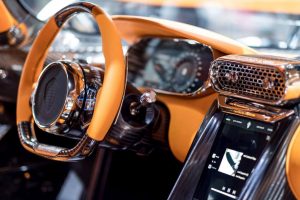 Jeden z tmavých farebných tónov, ktoré nájdete na tomto vozidle, sú kolesá z uhlíkových vlákien Tresex. Tie švédska spoločnosť nazýva „najľahšími a súčasne najpevnejšími pneumatikami, ktoré sa na svete vyrábajú.