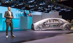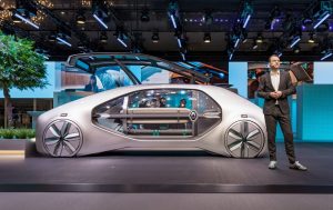 Automobilka Renault prekvapila na nedávnom autosalóne v Ženeve svojou kompletne elektrickou a autonómnou štúdiou s názvom EZ-GO. Podľa francúzskej predpovede by práve takto mohla vyzerať mestská doprava blízkej budúcnosti založená na spoločnom zdieľaní dopravného prostriedku.