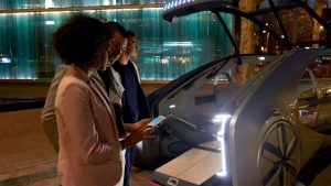 Potenciálny zákazník si môže privolať auto buď cez telefónnu aplikáciu, alebo sa dostaví na tradičné miesto a stále miesto, kde jednoducho naťuká do obrazovky cieľovú destináciu, odklikne si svoju kartu a nastúpi do prednej časti auta nie zboku.