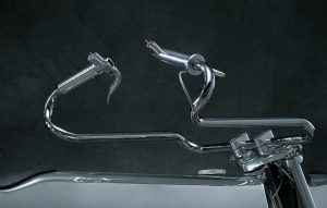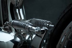 V prednej časti motorky sa o odpruženie kolesa starajú vidlice bližšie neurčeného pôvodu . Rovnako veľké zadné koleso je uložené v kavke vlastnej výroby, odpružené je pomocou dvojice vertikálnych tlmičov. Rám je tvorený jednodielnym hranolom z nerezovej ocele, v ktorom sa ukrýva nádrž a všetky potrebné prvky.