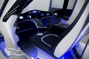 Celá palubná doska je osadená hneď niekoľkými displejmi, ktoré budú poskytovať informácie nielen pilotovi, ale tiež ďalším cestujúcim.V prvej vlne sa počíta s pilotom a troma pasažiermi, do budúcnosti potom s autonómnym riadením.