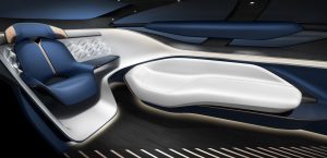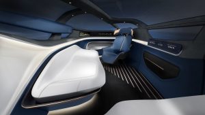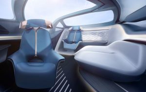 Úplne odlišne pojatý je interiér, ktorý je luxusnou obývačkou so všetkým mysliteľným komfortom s ohľadom na dopravní prostriedok. Dve pohodlné kreslá, stôl, striedma digitálna domácnosť a príjemný design. „Mobilné miesto pre život“ nemá žiadne pedále, volant a už vôbec nie palubnú dosku.