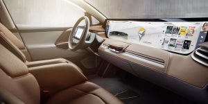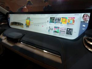 Takmer cez celú palubnú dosku sa rozprestiera veľká obrazovka, ktorá je vo dne jasne biela, za tmy sa ale jej svetlo zmení, aby nepôsobilo rušivo. Obrazovku je možné ovládať dotykom, hlasom a gestami. Uprostred volantu je tablet, ďalšie obrazovky sa potom nachádzajú na zadnej časti predných sedadiel.
