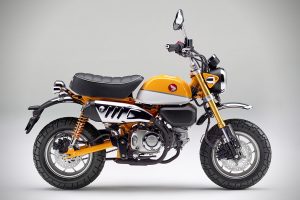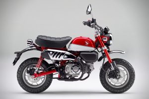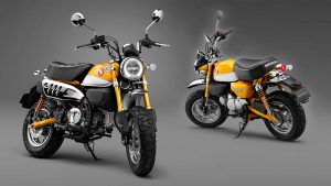 Legendárna “detská” motorka Honda Monkey 125 sa vracia na trh v novom prevedení. Motocykel, ktorý za tradičnými líniami ukrýva novú techniku, sa vyrába v troch farebných prevedeniach – bielej Ross v kombinácii so žltou Banana, perleťovej červenej Nebula alebo lesklej perleťovej čiernej Pearl Shining.