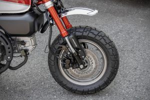 Nový model musel pochopiteľne vychádzať z klasického štýlu Monkey. Lichobežníková silueta zvýrazňuje kompaktnú dĺžku a zároveň proporciám stroja dodáva hĺbku a hmotu. Jednoduché zakrivené plochy sú navzájom nezávislé a vyskytujú sa po celej ploche stroja.