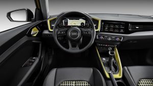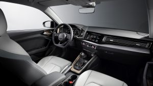 Interiér novej Audi A1 je výrazne orientovaný na šoféra a v mnohom sa dizajnéri inšpirovali u vlajkovej lodi, ktorou je model A8. Ovládanie klimatizácie síce zostáva tradičné, ale tlačidiel a celkovo ovládačov výrazne ubudlo. Netypický je napríklad prepínač režimu svetiel, avšak ergonómia auta sa javí ako príkladná.