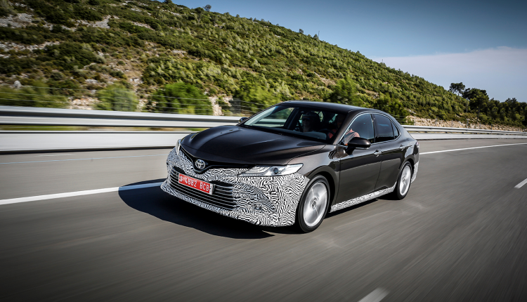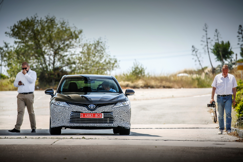 Nová Camry podstúpila najväčšiu zmenu vo svojej histórii. Do v prvom rade konzervatívneho sedanu sa totiž dostali emócie, čo je zjavné aj na maskovaných karosériách. Ostré, znížené línie urobia dojem. Dosiahnuť takúto siluetu by nebolo možné bez novej platformy TNGA, na ktorej stojí aj Prius a C-HR. O dynamiku sa dizajnéri snažili aj v interiéri. Aby palubná doska nepôsobila ťažkopádne, vyvinuli nový, kompaktný klimatizačný systém. Kde sa však inžinieri úplne „prekonali“, sú jazdné vlastnosti. Nová Camry má nižšie ťažisko, mimoriadne tuhú karosériu a spevnené uchytenie riadenia pre presnejšiu odozvu. Vzadu sa nachádza lichobežníková náprava, pričom cieľom inžinierov boli najlepšie možné jazdné vlastnosti bez citeľných náklonov karosérie.
