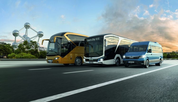 Značka MAN Truck & Bus v Bruseli ukázala široké portfólio mestských a medzimestských autobusov, autokarov a minibusov. Autobusy MAN pre mestskú prevádzku reprezentuje nová generácia modelovej rady Lion’s City. Za vlajkovú loď možno označiť elektrobus Lion’s City E.