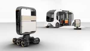 Dvojica autonómnych robotov Toyota e-Palette a Micro Palette je potom určená na prepravu rôznych predmetov alebo ponuku služieb. Zatiaľ, čo malý robot Toyota Micro Palette slúži na prevážanie malých predmetov, ako je napríklad fľaša s vodou, jeho väčší príbuzný sa volá e-Palette a je to autonómne auto, ktoré je možné si prenajať a jeho interiér prispôsobiť ľubovolným účelom.