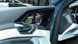 Zábery z nich zobrazujú displeje OLED s vysokým kontrastom na prechodoch medzi prístrojovou doskou a dverami. Pokiaľ šofér priblíži priblíží prst k povrchu dotykového displeja, objavia sa symboly, ktorými môže meniť zobrazovanú oblasť. Funkcie kamerových zrkadielok sa okrem toho automaticky prispôsobuje trom jazdným situáciám. Audi predstavuje svetovú novinku vo veľkosériovej výrobe – digitálne svetlomety Matrix LED ako najvyšší stupeň výbavy v oblasti osvetlenia.