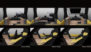 Pôsobivý by však mal byť polomer otáčania, ktorý Toyota popisuje ako „extrémne malý.“ Okrem produkčnej varianty Ultra-compact BEV však Toyota predstavila ešte niekoľko zaujímavých projektov. Jedným z nich by mal byť aj čierny koncept Ultra-compact BEV Concept Model for business, ktorý je navrhnutý s možnosťou vlastnej úpravy interiéru do rôznych režimov (drive, office & relax). Štúdia tak počíta s možnosťou plne autonómneho cestovania v pojazdnej kancelárii, počas ktorého ponúkne cestujúcim rôzne spôsoby trávenia času.