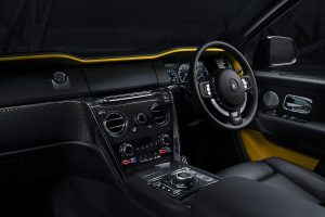 Čierny exteriér aj interiér so žltými dizajnovými prvkami dodáva vozidlu Cullinan ešte väčšiu dravosť, pričom čerešničkou na torte je čierna pochrómovaná soška Spirit of Ecstasy.