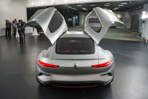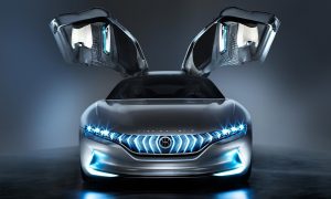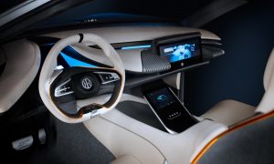 Ďalším výrazným prvkom je aj osvetlenie masky prechádzajúcej do predných svetlometov. Rovnako extravagantný ako exteriér je aj interiér vozidla. Dodržuje organické línie z exteriéru, ale možno trochu zbytočne experimentuje s materiálmi a štruktúrami. Volant a palubná doska sú vyvedené v bielej koži. Dominantných je niekoľko displejov a nadmiera osvetlenia. Pohon budú zabezpečovať elektromotory a prípadne aj turbína.