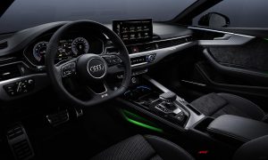 Veľký displej MMI touch, centrála nového ovládacieho systému, sa nachádza uprostred prístrojovej dosky a je mierne natočený k šoférovi. V tme vytvára príjemnú atmosféru paket viacfarebného dekoračného osvetlenia vrátane zvýraznenia kontúr, ktorý sa dodáva sériovo vo výbave „Design selection.“ Novinku si môžete objednať v obmedzenej dobe aj v špeciálnej edícii Audi A5 edition one.