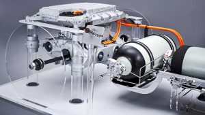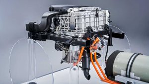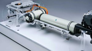 Pod palivovým článkom je umiestnený elektrický menič, ktorý upravuje napätie tak, aby ním bol poháňaný elektrický motor a prebytky zadržala batéria. Tá je nabíjaná pomocou rekuperácie kinetickej energie a súčasne práve elektrinou z palivových článkov. Vozidlo disponuje tiež dvojicou nádrží s tlakom 700 bar, ktoré spoločne pojmú šesť kilogramov vodíku. „Táto zásoba zaisťuje dlhý dojazd bez ohľadu na klimatické podmienky,“ dodáva Guldner. „Doplnenie paliva navyše zaberie len asi tri až štyri minúty.“ Koncept BMW i Hydrogen NEXT poháňa elektromotor piatej generácie technológie eDrive, ktorý už využíva tiež BMW iX3.