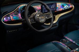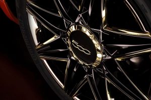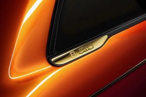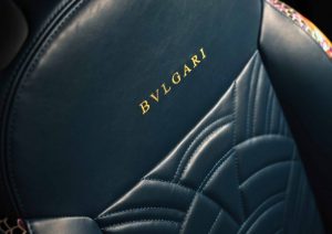 To všetko v zlatom prevedení, ako to dokáže len BVLGARI. Motív „Parentesi“, inšpirovaný travertínovými križovatkami rímskych ciest, sa transformoval do prednej mriežky motora. Odkaz na kultovú hviezdu BVLGARI nájdeme na lesklých ráfikoch kolies, ktoré sa rozbiehajú ako lúče zlatého svetla. Palubná doska potiahnutá farebným hodvábom, ručne maľovaným ikonickými motívmi BVLGARI ako extravagantný akcent pre túto značku typický, spoločne s výnimočným remeselným spracovaním. V nápadnom farebnom kontraste s exteriérom sú sedadlá potiahnuté oktánovou kožou s rovnako farebnou výšivkou, na ktorej rezonujú prvky z palubnej dosky so zlatým lemovaním.