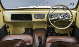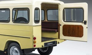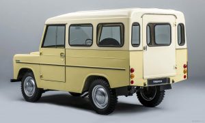 Sedí sa tu ako na stoličke s nízkym operadlom, vysoko a blízko ku dverám. Vďaka takmer rovným oknám a bohatému preskleniu má vodič dokonalý prehľad. Vzadu sú dve pozdĺžne lavice, kam sa posadí minimálne poltucet dospelých osôb alebo rodina idúca na výlet. Na vzniku predchodcu dnešných SUV mala značnú zásluhu aj mladoboleslavská škodovka. Karoséria bola zvarená z plechových dielov. Vozidlo bolo veľmi ľahké, vážilo len pol tony, čo mu umožnilo jednoduchší pohyb v teréne.