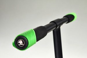 Pohodlné uchytenie riadidiel na ceste do práce, za športom alebo do supermarketu zaistí gumená rukoväť. Kolobežka Škoda je vyrobená z ocele a hliníku, pričom váži menej než päť kilogramov, nosnosť má však až 100 kilogramov. Kolobežka je jednoduchým riešením mobility v designe charakteristickom pre značku Škoda.