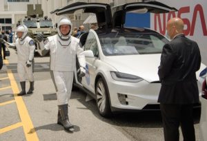 Elon Musk využil každý detail programu SpaceX súčasne aj na reklamu svojej automobilky Tesla. Napokon, astronautov NASA Boba Behnkena a Douga Hurleyho dopravili na odpaľovaciu rampu 39A na elektromobiloch Tesla Model X. Podľa odborníkov sa aj tieto posledné Muskove aktivity z projektu SpaceX v čase koronavírusovej krízy pozitívne odrazili na zvýšenom renomé jeho automobilky, ktorej ceny akcii počas víkendu výrazne narástrli.
