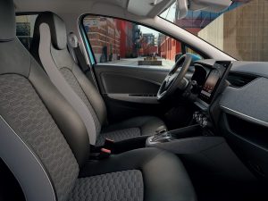 Nový Renault Zoe obsahuje rovnako 17,5 kg recyklovaných plastov, z ktorých časť je u sortimentu Renault po prvý raz použitá na výrobu viditeľných súčastí kabíny, napríklad spodného vnútorného polypropylenového obloženia. Vďaka tradičným znalostiam a skúsenostiam s mykanými priadzami a spoločne vyvíjaným inováciám sa týmto textilným výrobkom – vyrábaným z bezpečnostných pásov, textilných odpadov automobilového priemyslu a polyesterových vlákien pochádzajúcich z recyklácie plastových fliaš (PET) – teraz poťahuje nové vozidlo Zoe v úpravách Zen a Intens.