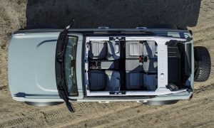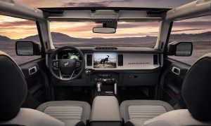 Na ceste do divokej prírody určite nebude chýbať až nečakane veľká variabilita vrátane odnímateľných dverí a strešných panelov. Autu dominuje design masky s veľkým nápisom Bronco a zadná časť s možnosťou zavesenia rezervného kolesa. Okrem toho je k dispozícii luxusní interiér vrátane veľkých displejov a najrôznejších vychytávok ako offroadové mapy či otvárač na fľaše.