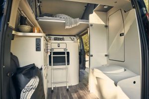 Pod výklopnou strechou sa nachádza pohodlné lôžko. Strecha je dostatočne ľahká na to, aby s ňou bolo možné manipulovať ručne, a jej bočnice majú vodeodolnú úpravu. Navyše nevylučuje použitie strešného nosiča. Po vztýčení strechy dosahuje vnútorná výška 2,4 metra. Veľké zadné okno a dvojice bočných okien prepúšťajú dovnútra dostatok svetla, je však možné ich zakryť záclonami. Horný spací priestor je vybavený ventilačnými otvormi a LED čítacími lampičkami. Dvojlôžko je možné v priebehu dňa zložiť, aby bol k dispozícii väčší obytný priestor.