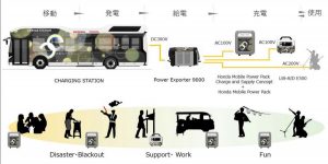 Toyota a Honda majú v pláne vytvoriť systém mobilnej elektrárne a začať prevádzkové testovanie dodávok elektriny spotrebiteľom. Systém nazvaný „Moving e“ je mobilný a je možné ho využívať v dobe katastrofy. Nabíjacia stanica má navyše na palube priestor, kde ľudia môžu dočasne zložiť hlavu, a poslúžia tak nielen ako dopravný prostriedok, ale aj ako miesto na odpočinok v dobách katastrofy.